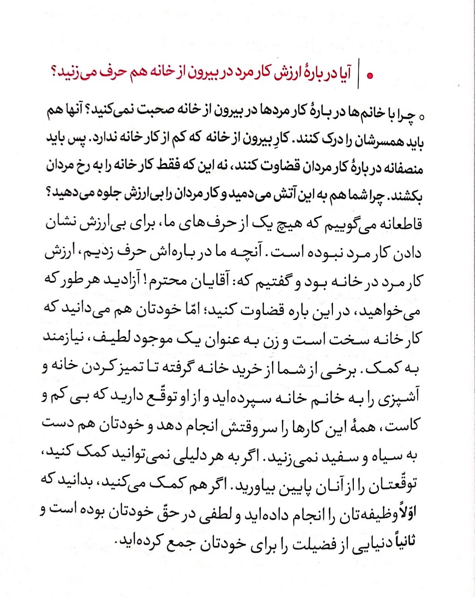 در طول تاریخ، موضوع «زن» همیشه در مرکز توجه انسان بوده و در عصر ما نیز همچنان، موضوعی بحث برانگیز در محافل گوناگون است. یکی از مسائلی که همیشه با نام زن همراه بوده، پاسخ به این پرسش مهم است: زن؛ خانه داری یا اشتغال؟ تاکنون پاسخ های گوناگون و حتی ضد و نقیضی به این پرسش داده شده است؛ اما در میان همه ی پاسخ ها هیچ کدام به اندازه ی پاسخ خالق زن، نمی تواند ذهن ها را قانع و دل ها را آرام کند.