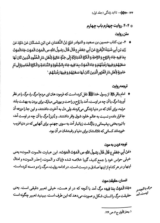 اینک جلد اول آن با نام «تولدی دیگر» به کتاب جان آمدهاست و به شرح احادیث «کتابالموت» بحارالانوار میپردازد. این مباحث پیشاز این در سالهای ۱۳۸۵ تا ۱۳۹۳ طی سلسله جلساتی با عنوان همین کتاب مطرح شده بود و اینک پس از تحقیق و نگارش دقیقتر، توسط «مؤسسه مطالعات اسلامی رواسی» به چاپ رسیده است.