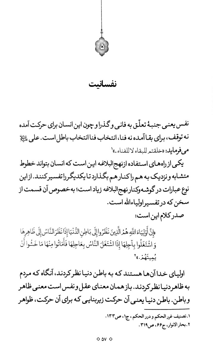 « ریشهٔ آرزو دو چیز است: یکی آگاهی انسان، یکی برخورد متعهدانهٔ انسان. اگر انسان با تعقل و با نور با آرزو برخورد کند، درعینحال که آن آرزو او را حرکت میدهد، خود این حرکت، از طریق رشد آگاهی، موجب تغییر آرزو میشود و انسان سیر میکند.»