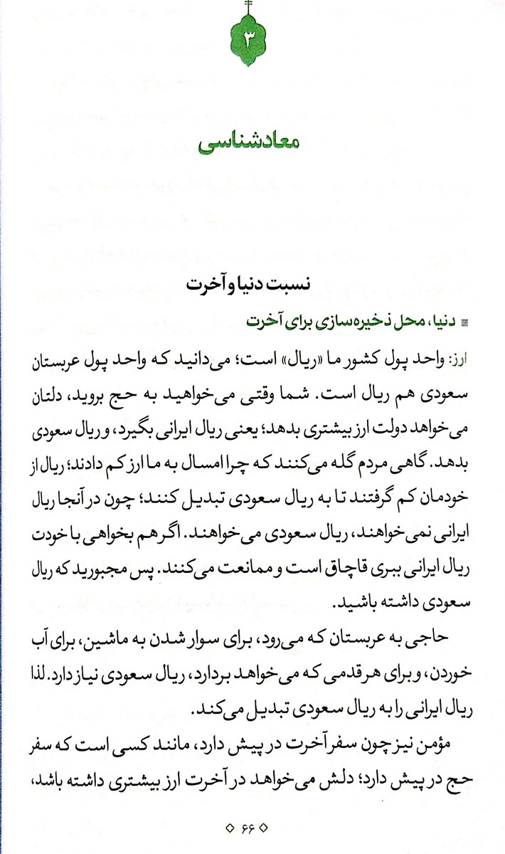 و در فصل بعد، تمثیلات علمی چون: فلسفه احکام، جهان بینی، دانش و… را بررسی میکند.