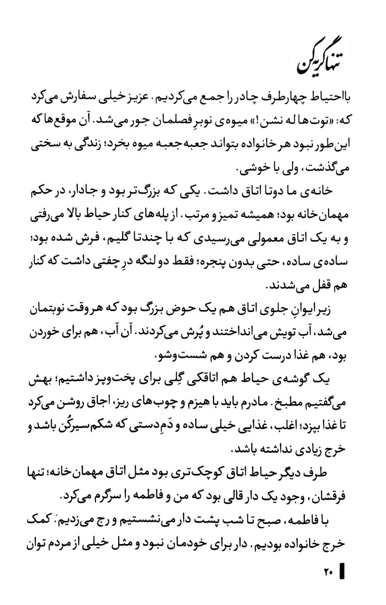 کتاب تنها گریه کن ، روایت زندگی اشرفسادات منتظری، مادر گرامی شهید محمد معماریان است که خانم اکرم اسلامی نویسنده این اثر ارزشمند هستند.