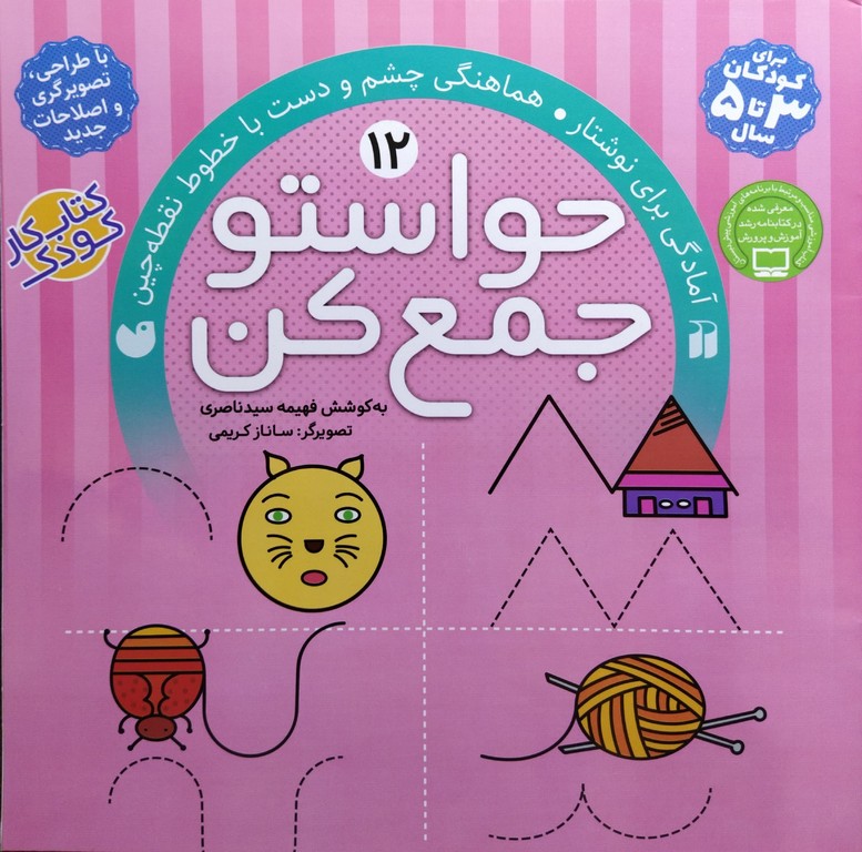 اینک کتاب دوازدهم از این مجموعه مراحل اولیه جهت نوشتار را دنبال میکند که از طریق رنگ آمیزی اشکال،کشیدن نقطه چینها، به هماهنگی چشم و دست، تقویت عضلات ریز دست و در نهایت کنترل انگشتان کمک میکند.