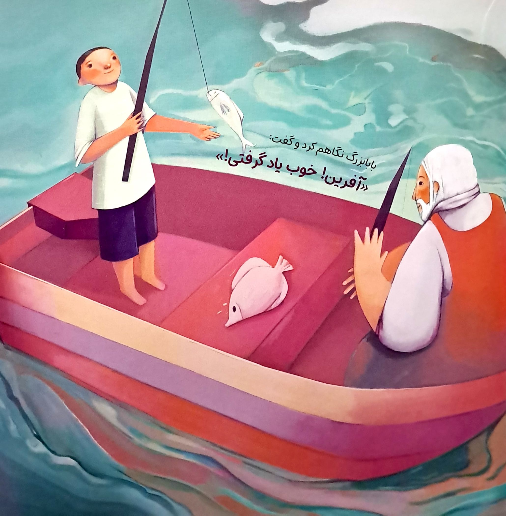 هر وقت به خانه ی بابابزرگ در جنوب مسافرت میکنیم با او می آیم ماهیگیری.