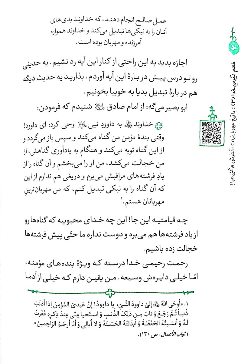 ((تو بحث توبه هم گفتم که بعضی از ماها برا معرّفی خدا طوری عمل میکنیم که العیاذ بالله انگار میخوایم اشتباههایی که خدا و اهل بیت علیه السلام تو معرّفیشون داشتن، جبران کنیم. انگار که اونا حواسشون نبوده این حرفا میتونه زمینهساز جَری شدن بعضی از بندهها بشه.))