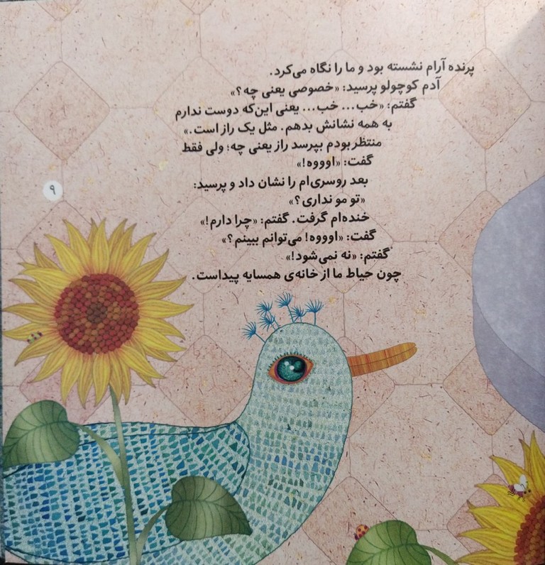آدم کوچولو جواب نداد دفترم را نشان داد و گفت: «چی چی می نویسی؟ برایم میخوانی؟ دفترم را بستم و گفتم نه نمیشود؛ خصوصی است