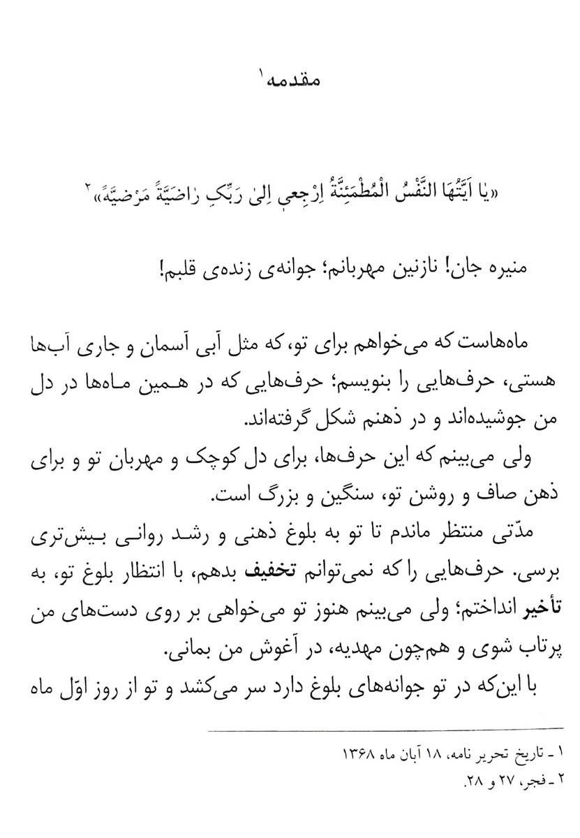 ازآنجا که این متون از لطافت و غنای خاصی برخورداراند، و به خوبی جایگاه بلوغ و اهمیت آن را برای جوانان و نوجوانان تبیین می کند، توسط انتشارات لیله القدر برای همه نسلهای آیندهساز به چاپ رسیده است.